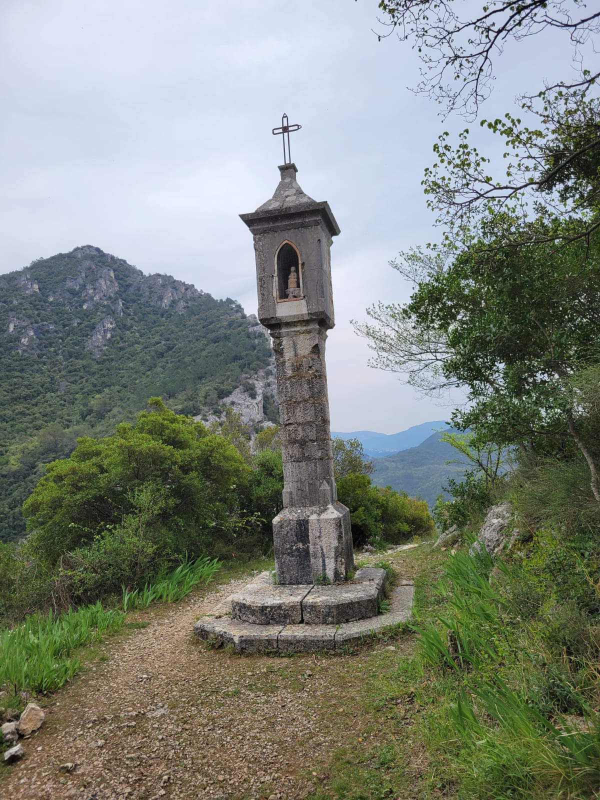 Un oratoire discret veille sur le passage, témoin silencieux d’histoires oubliées.