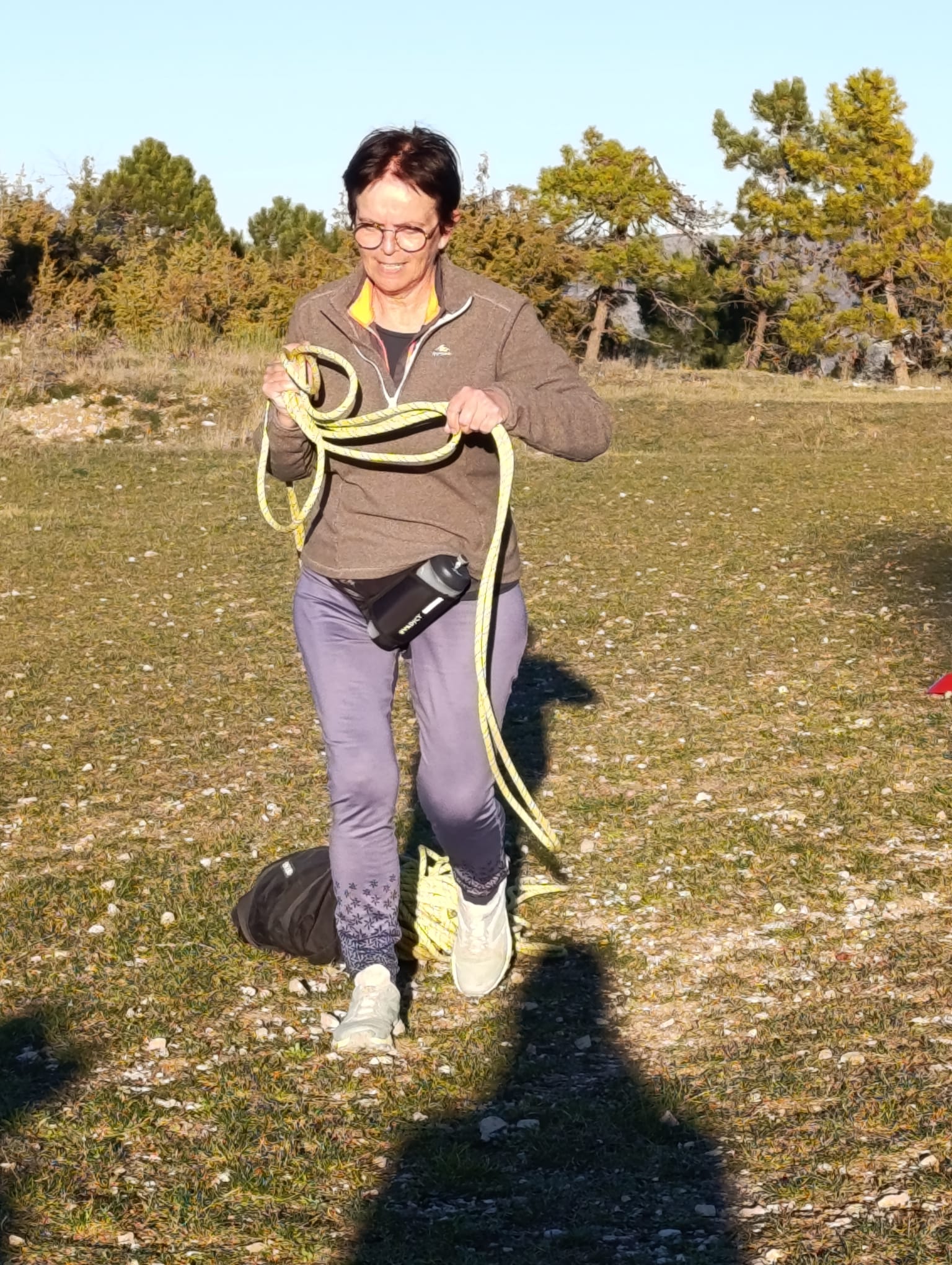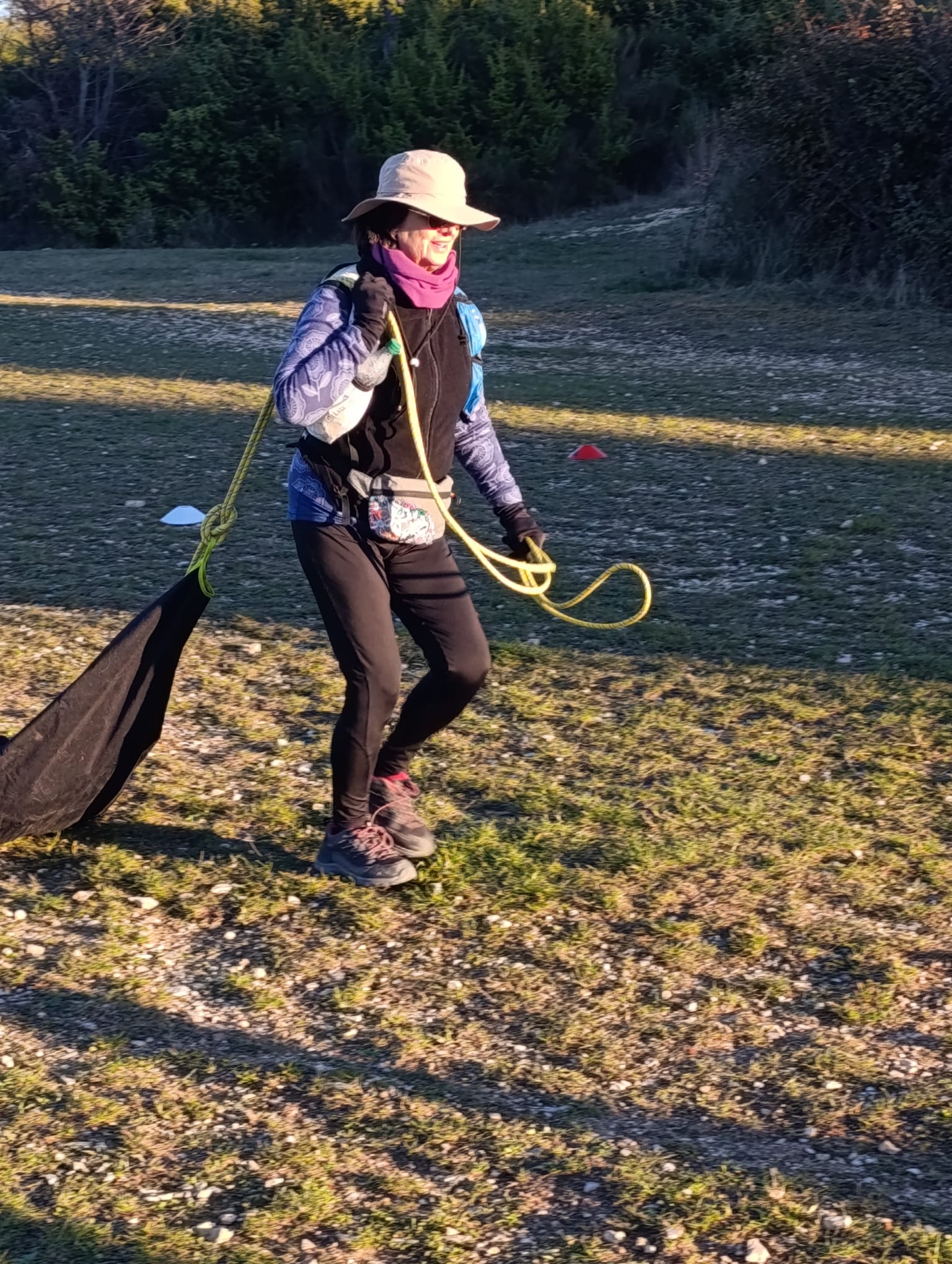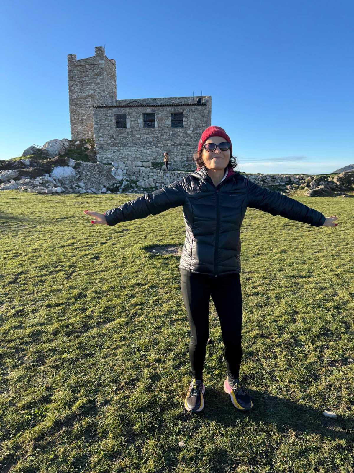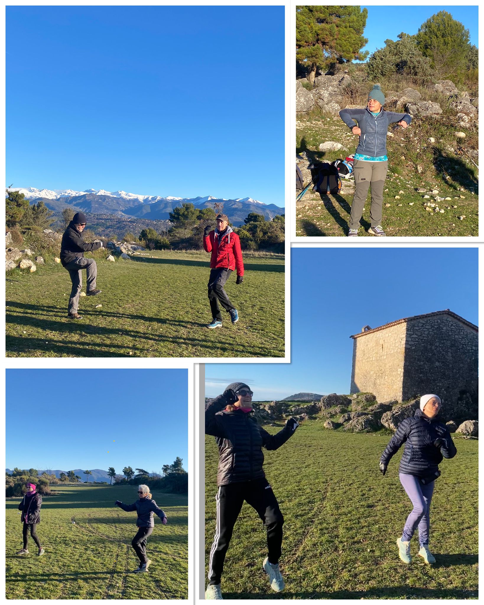 Ce matin, nous avons pris le temps d’arriver tranquillement au Mont Macaron. Sur place, une jolie plaine, dominée par les ruines du Châteauneuf, nous attendait. Nous étions là, déterminés à relever tous les défis. La séance a débuté par une mise en route dynamique et entraînante en musique, suivie d’une marche tonique, un excellent remède après les fêtes !