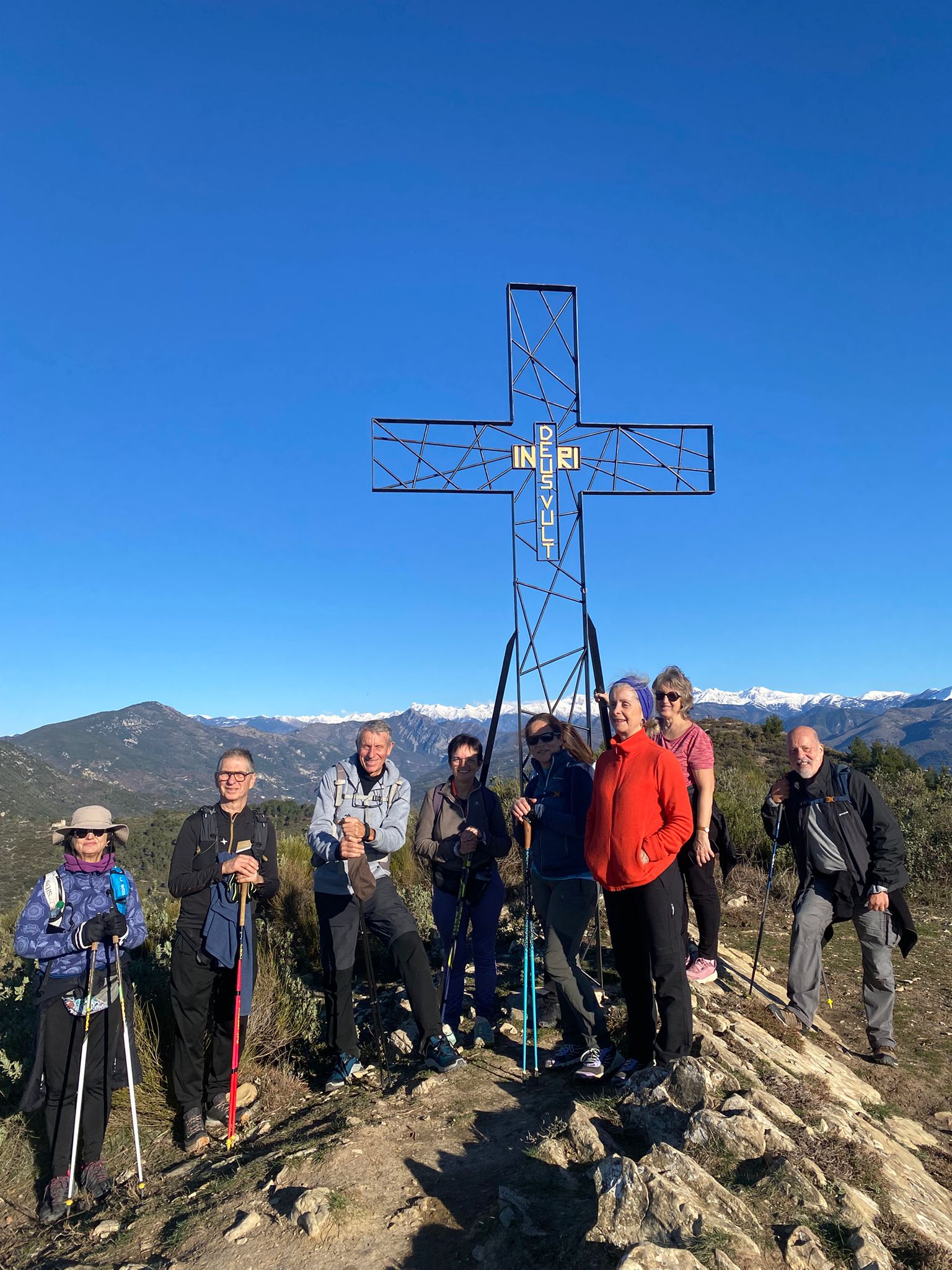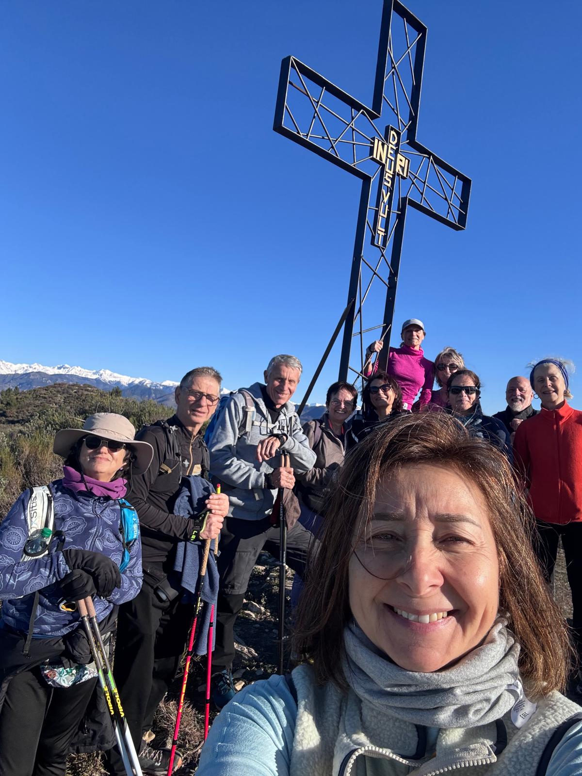 Le Mont Macaron, quel merveilleux lieu pour notre dernière marche nordique de l’année, et quelle splendide journée pour la clôturer en beauté ! Toutes les conditions atmosphériques et climatiques étaient réunies : un soleil étincelant, des couleurs magnifiques sublimant les paysages, des chaînes montagneuses, au loin, revêtues d’un manteau neigeux immaculé, et une mer aux reflets bleus, jaunes et dorés se mêlant harmonieusement.