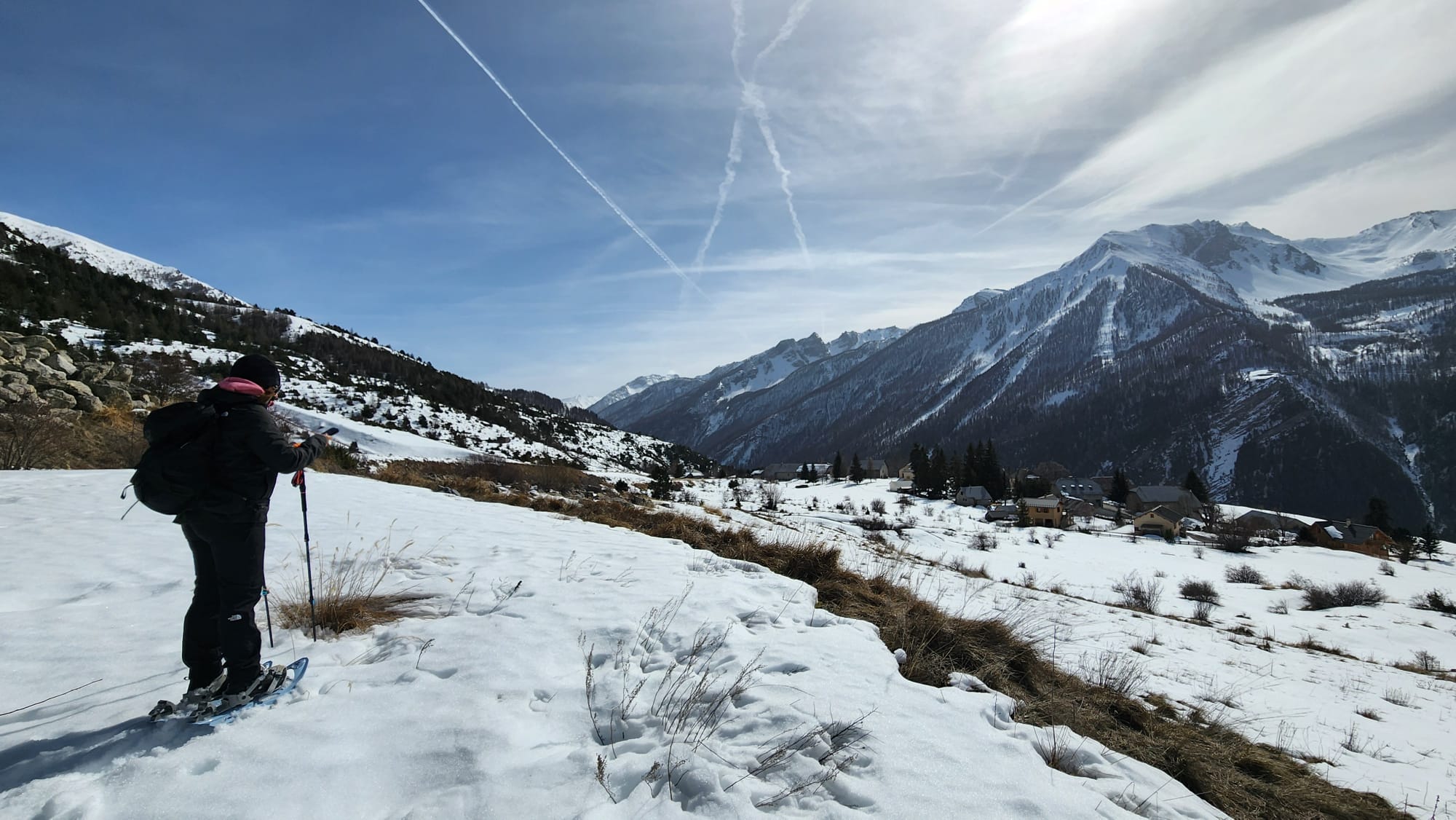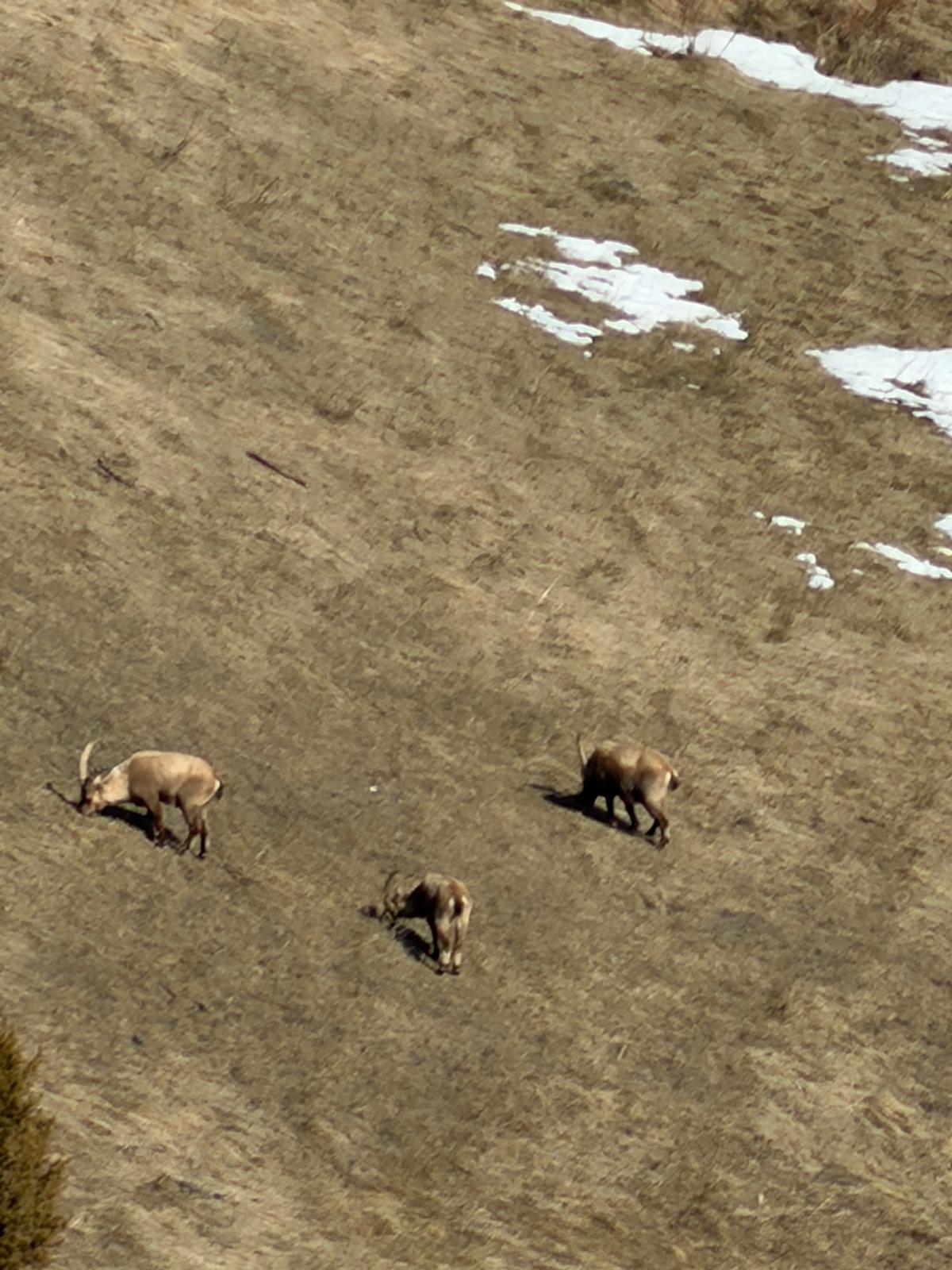 La première sortie raquettes autour du village de Saint Ours a été l'occasion de vérifier le matériel, la pratique, et nos connaissances, dont la fameuse conversion, sous l'œil bienveillant d'une douzaine de bouquetins.